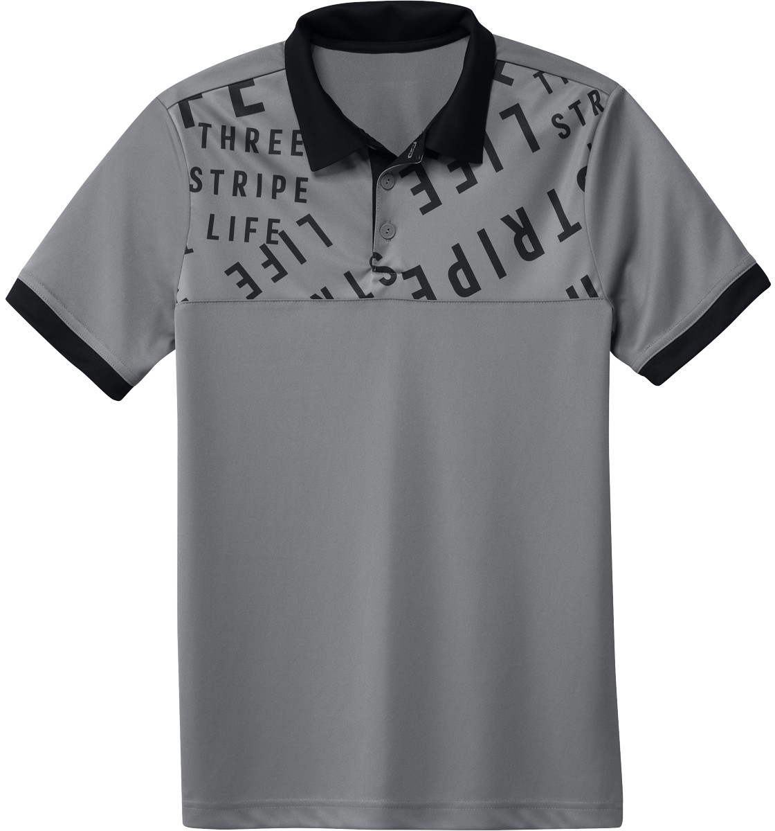 Adidas 3-Stripes Life Print Junior Golf Shirts - ON SALE - Grey with black accents and Three Stripes Life graphic