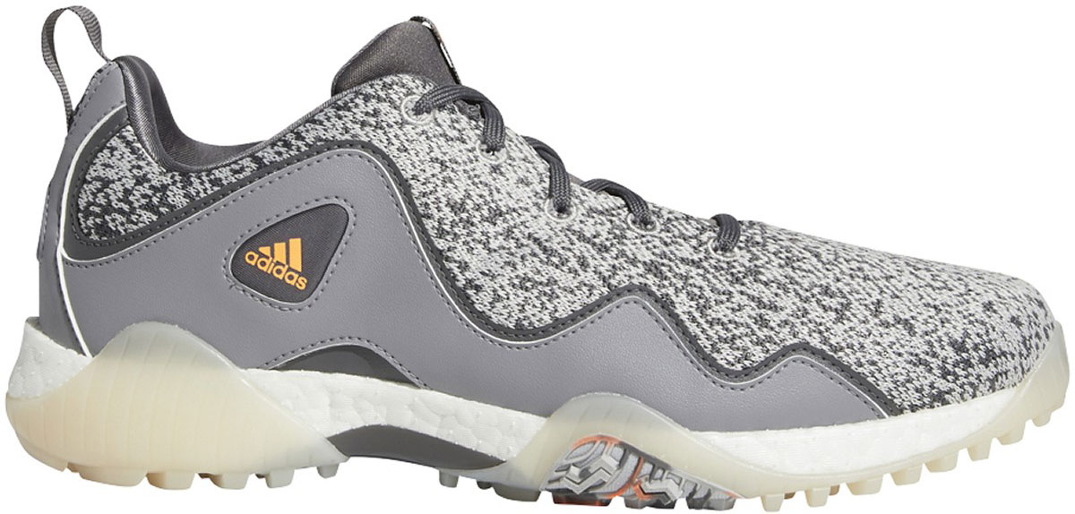 Adidas Codechaos 21 Spikeless Golf Shoes feature a waterproof knit mesh upper with supportive overlays that offers lightweight performance with a distinctive look.