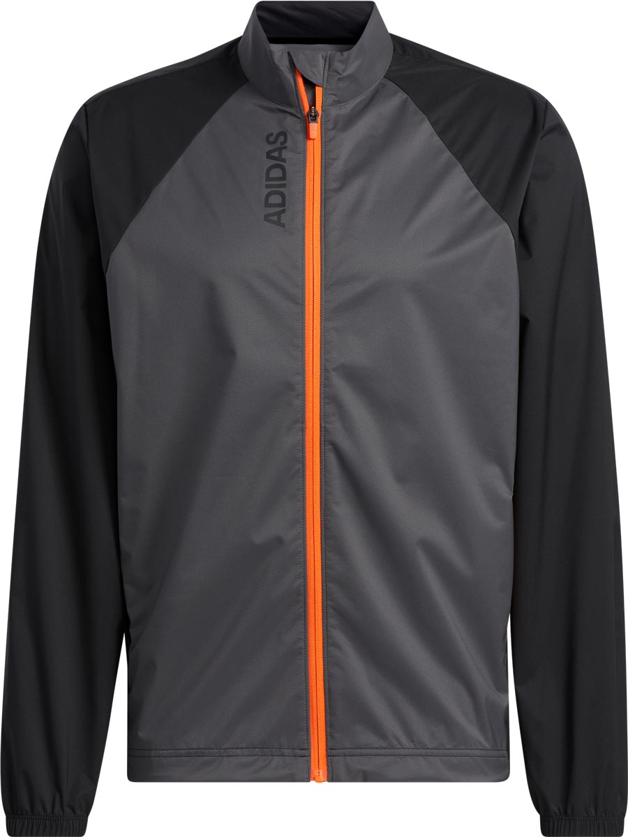 Adidas Provisional Full-Zip Golf Rain Jackets - ON SALE - Black with grey and orange accents