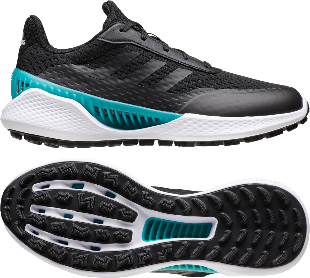 Adidas Summervent Women's Spikeless Golf Shoes - ON SALE - Core black with mint rush accents, white sole, and black outsole