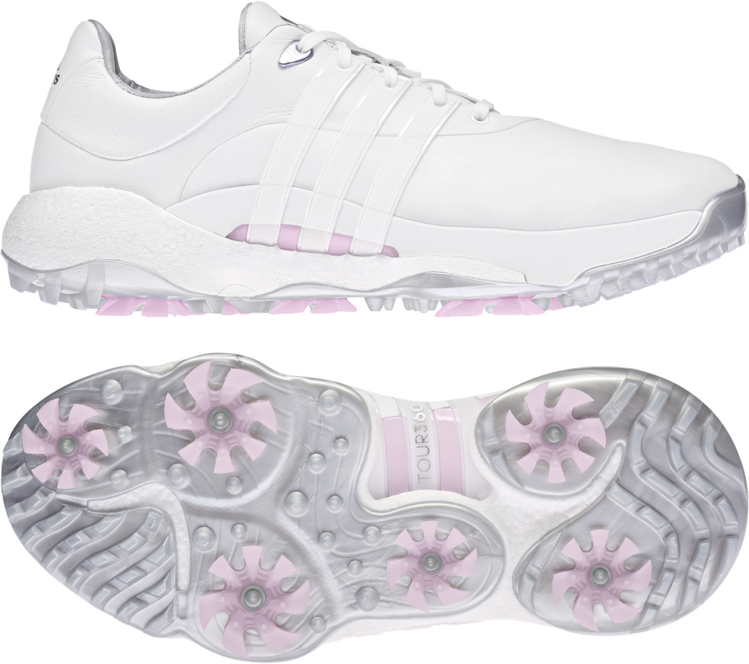 Adidas Tour360 22 Women's Golf Shoes - ON SALE - White with grey and almost pink accents and outsole
