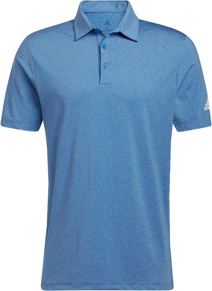 Adidas Ultimate 365 Heather Golf Shirts are designed with a 3-button placket, a self collar, and the Adidas brandmark logo on the left sleeve.
