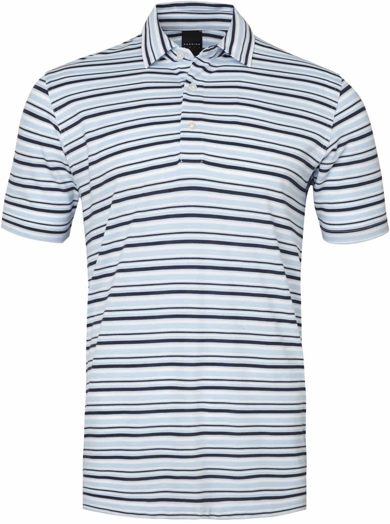 Dunning Lennox Pique Golf Shirts are constructed with 47% CoolMax Polyester, 48% Modal, 5% Spandex, a stripe design, a 3-button placket, and a self collar for unbeatable golf style.