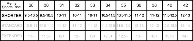 These are the size measurements taken in our warehouse when the golf shorts are laid flat and measured from the middle of the crotch seam to the top of the waistband. All measurements are in inches.