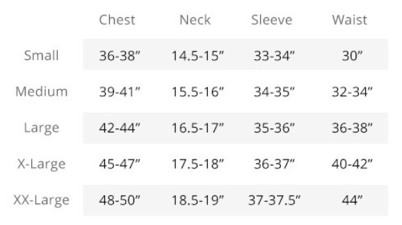 Peter Millar Size Guide