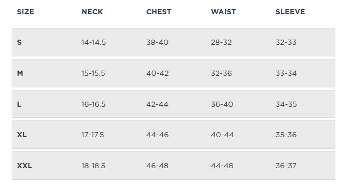 Below are the sizing guidelines for Men's Apparel as outlined by johnnie-o. All measurements are in inches.
