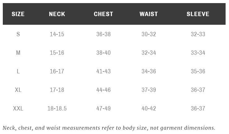 Below are the sizing guidelines for men's outerwear as outlined by Criquet.