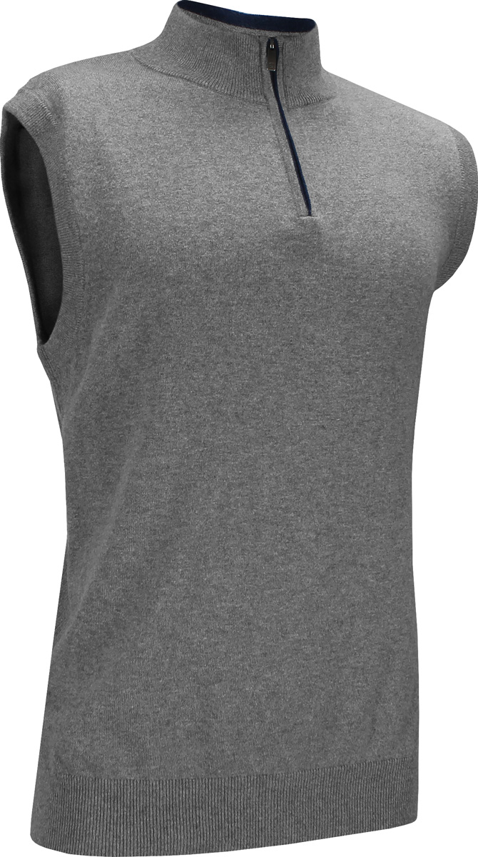 FootJoy Cotton Cashmere Quarter-Zip Golf Sweater Golf Vests are designed with an ultra-soft Cotton Cashmere blend for luxurious comfort.