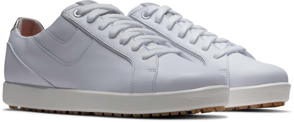 FootJoy FJ Links Women's Spikeless Golf Shoes - ON SALE - White leather uppers with tan sole
