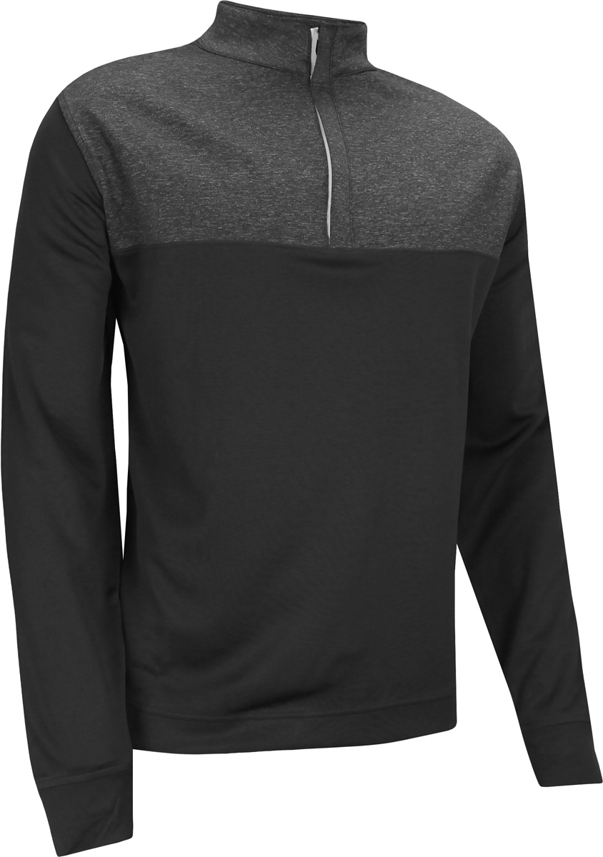 FootJoy Heather Yoke Half-Zip Golf Pullovers are constructed with a half-zip opening, banded cuffs and hem, and a heather upper yoke.