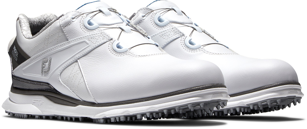 FootJoy Pro SL Carbon BOA Spikeless Golf Shoes feature ChromoSkin leather uppers and a complete ground contact design for stability and comfort out on the links.