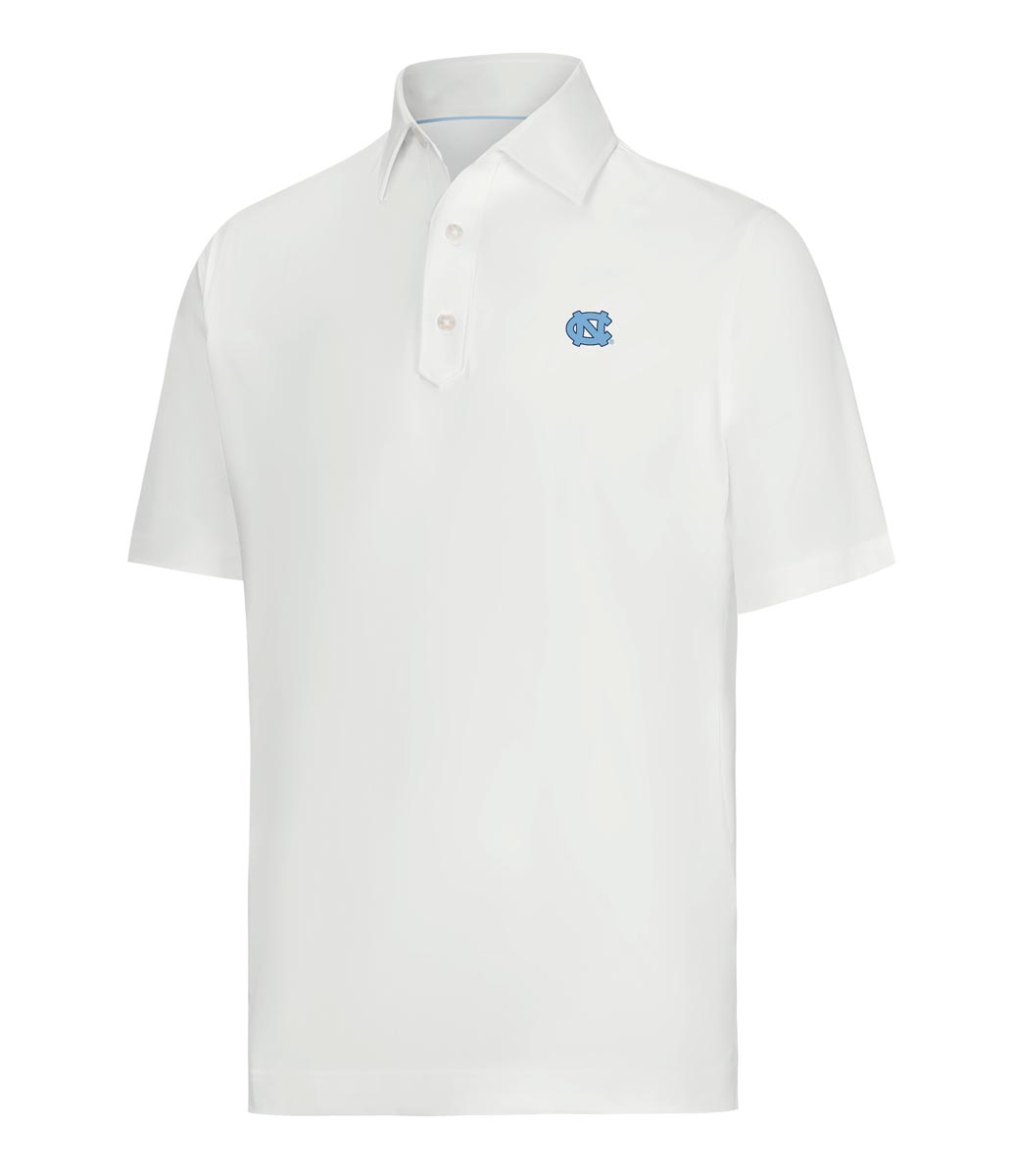 FootJoy Solid Performance Golf Shirts are constructed with 88% Polyester, 12% Spandex, a 3-button placket, and the University of North Carolina logo.