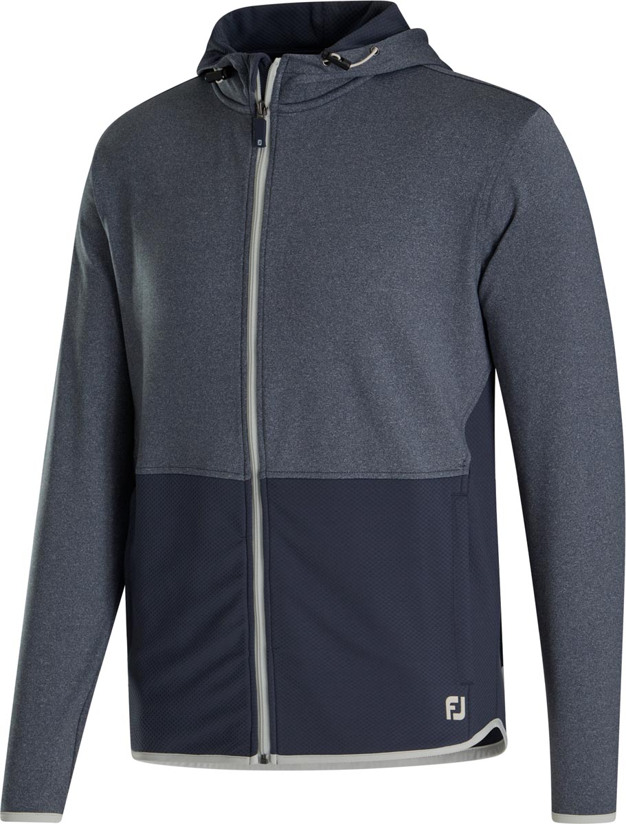 FootJoy ThermoSeries Full-Zip Golf Hoodies are engineered with lightweight woven and knit fabric that offers optimal protection from the elements.