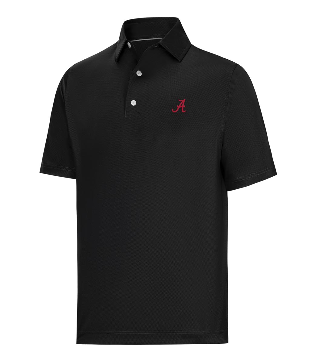 FootJoy Tonal Dot Print Golf Shirts are constructed with 88% Polyester, 12% Elastane, a 3-button placket, a subtle tonal dot design, and the University of Georgia logo.