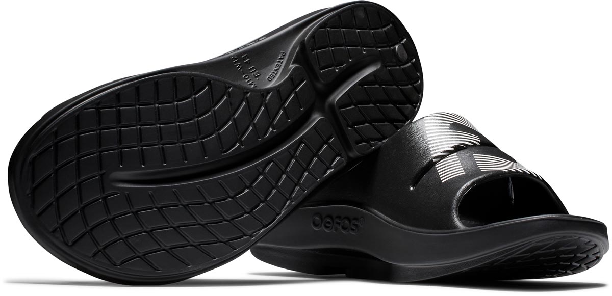 FootJoy x OOFOS OOahh Sport Slide Casual Sandals feature a patented footbed design that is lightweight and flexible for enhanced active recovery.