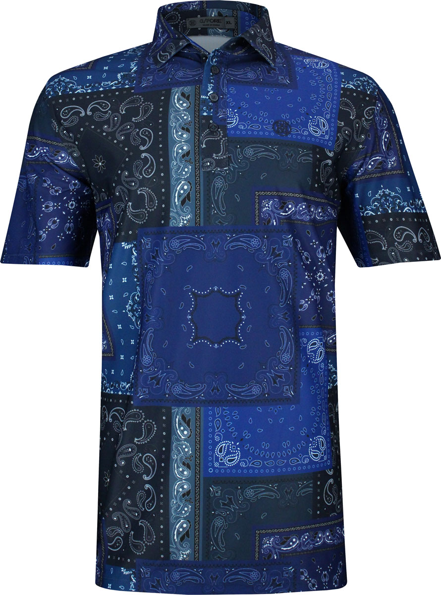 G/Fore Bandana Tech Pique Golf Shirts are constructed with 94% Polyester, 6% Spandex, four-button placket, self collar, and novelty bandana print.