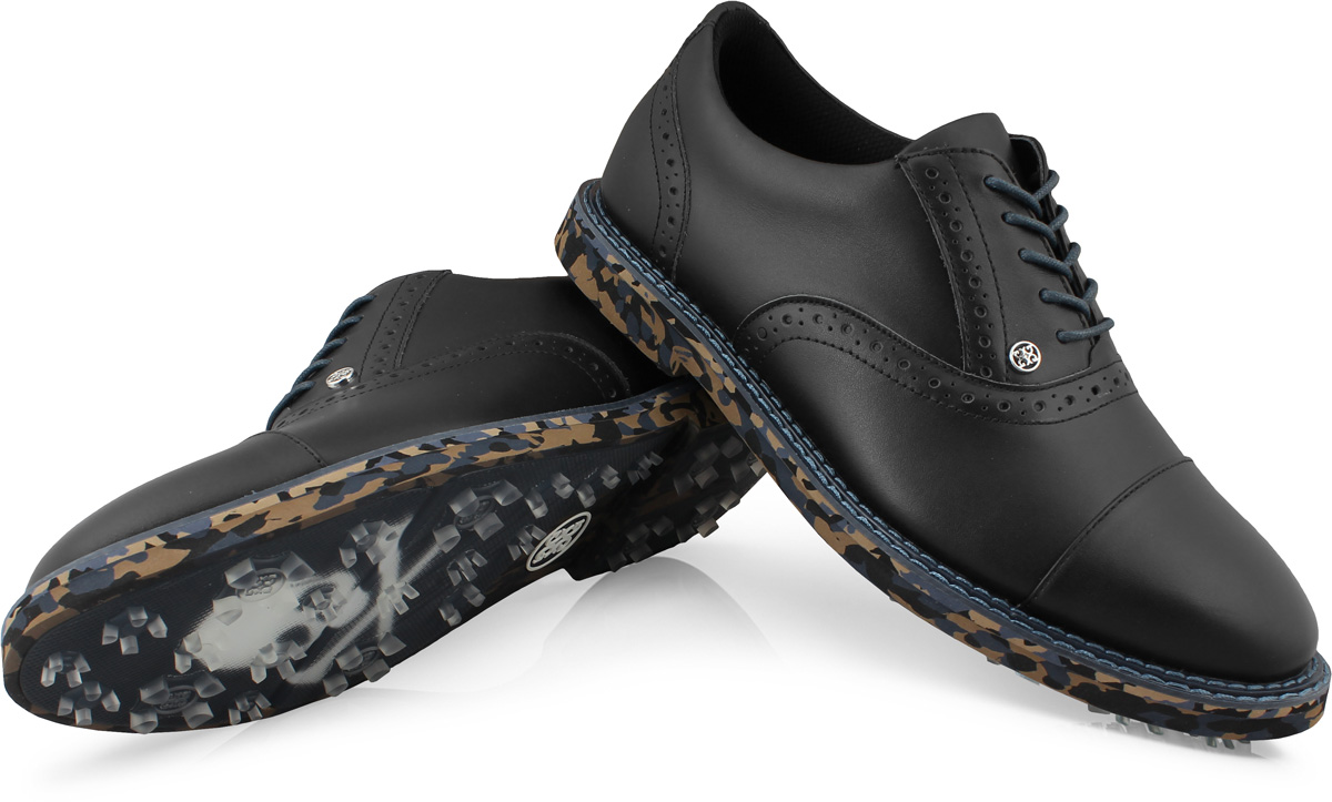 G/Fore Gallivanter Spikeless Golf Shoes - Black Limited Edition - Golf Locker Exclusive - HOLIDAY SPECIAL - Black leather with black welt and blue, tan and black camo sole