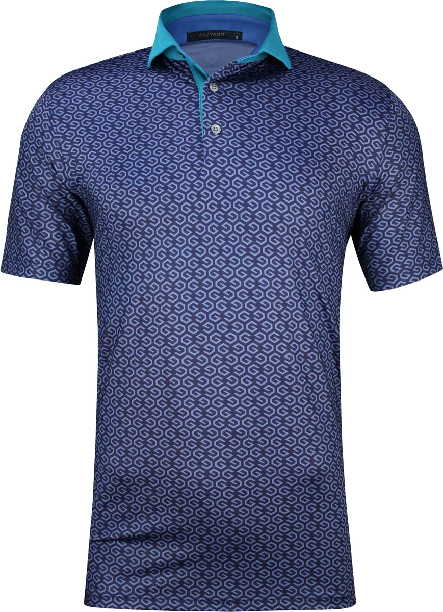 Greyson Clothiers River Wild Golf Shirts are constructed with 90% Poylester, 10% Spandex, three-button placket, contrasting knit collar, and novelty print.