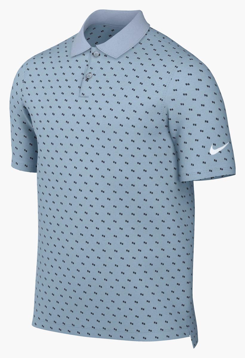 Nike Dri-FIT Victory+ Printed Golf Shirts feature 100% Polyester, a two-button placket, a subtle printed design, and the Nike brandmark logo on the left sleeve.