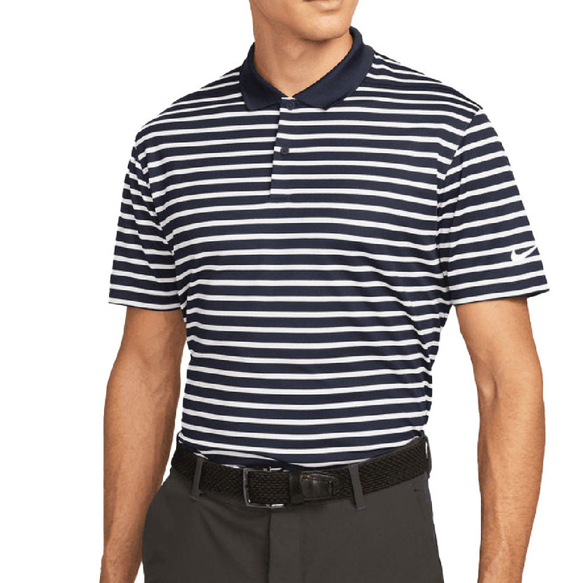 Nike Dri-FIT Victory Stripe Left Sleeve Logo Golf Shirts - College navy with white stripes