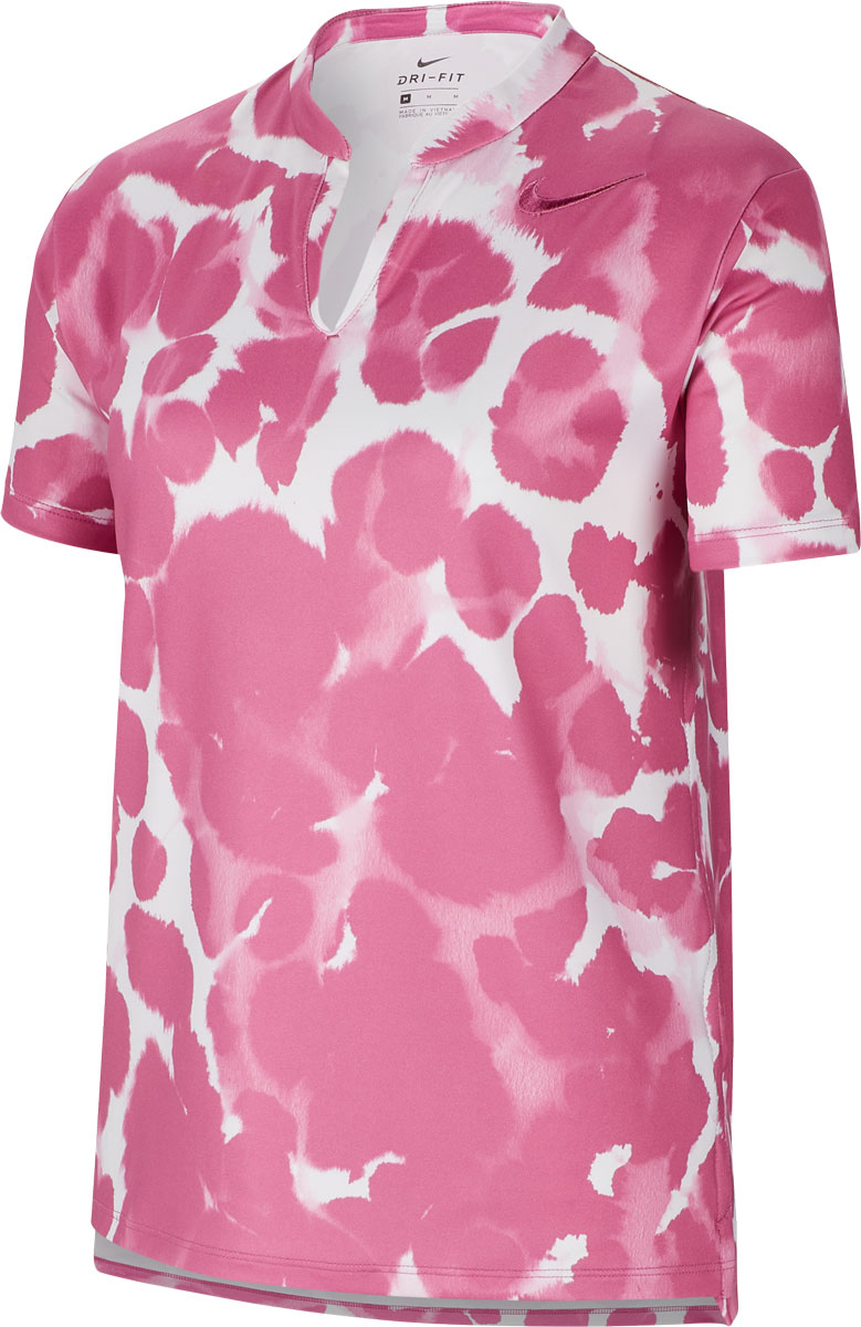 Nike Girl's Dri-FIT Printed Junior Golf Shirts feature a v-neck design that puts a modern twist on a classic polo neckline.