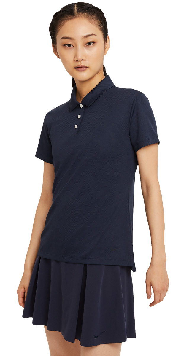 Nike Women's Dri-FIT Victory Texture Golf Shirts feature faux-pearl buttons on the placket that adds a touch of sophistication to your look.