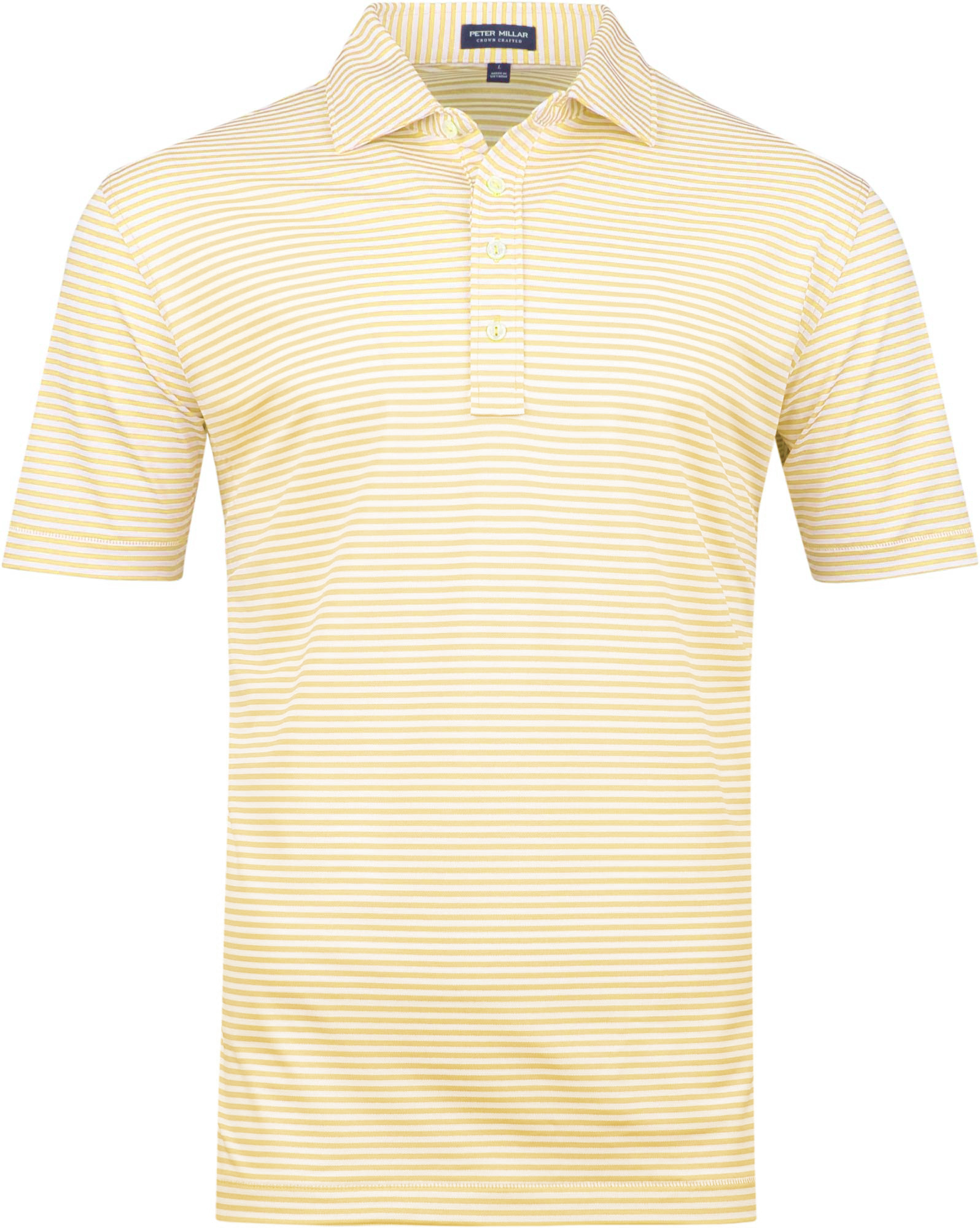 - Peter Millar Crown logo - heat-sealed on the back neck yoke.