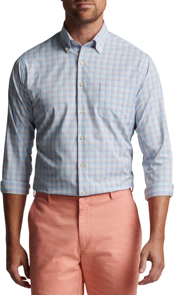 Peter Millar Irving Performance Twill Sport Woven Button-Downs feature stylish multicolored plaid with premium performance fabric with two-way stretch and moisture-wicking capabilities.