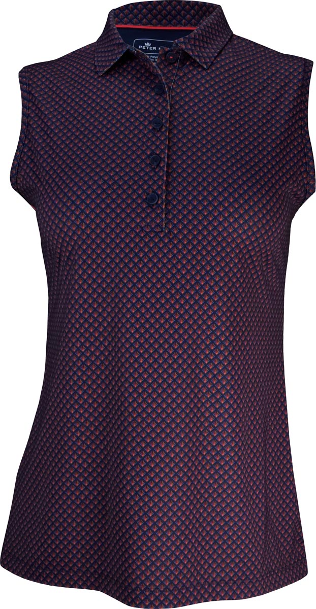 Peter Millar Women's Perfect Fit Deco Star Sleeveless Golf Shirts - ON SALE - Navy with red deco print