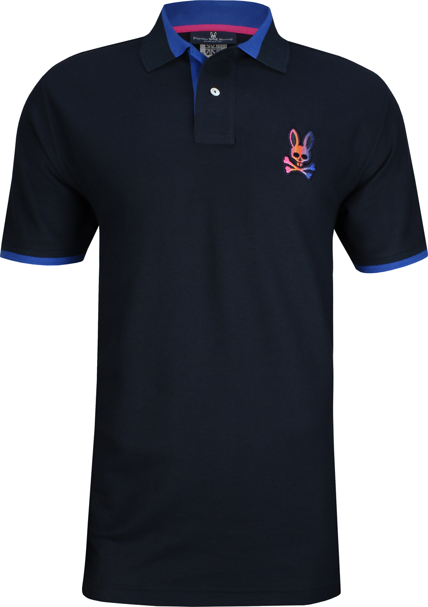Psycho Bunny Dylan Gradient Bunny Golf Shirts - ON SALE - Navy with pink and purple accents