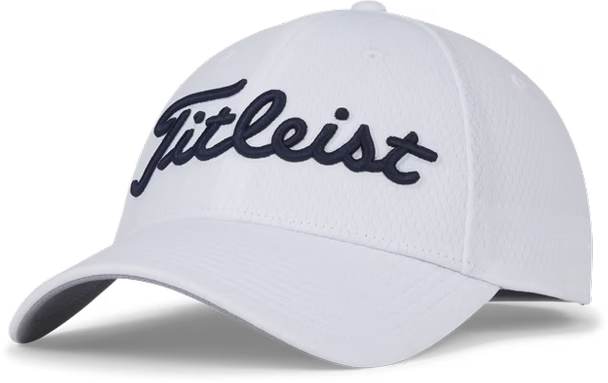 Titleist Tour Elite Mesh Custom Flex Fit Golf Hats - White with navy font