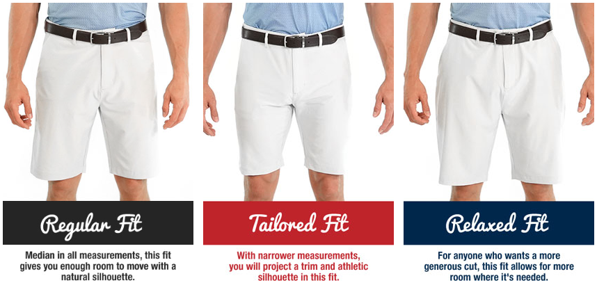 Tailored Fit - With narrower measurements you will project a trim silhouette in this fit. This athletic fit provides a cut closer to your body with a shorter rise and more tapered fit in the legs.