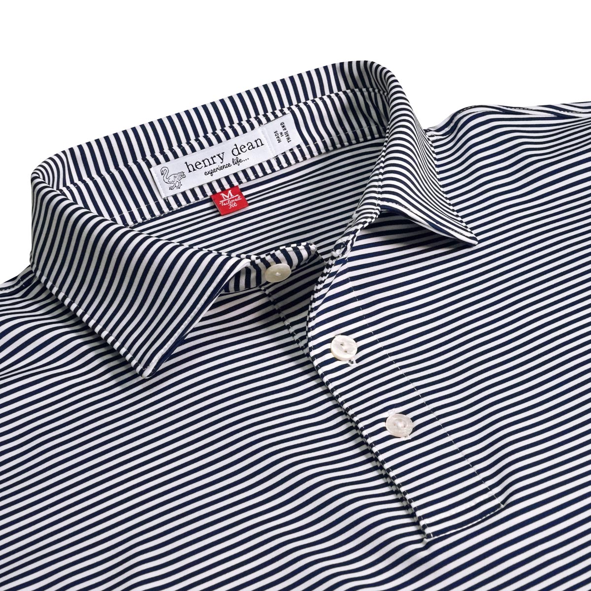 henry dean golf shirts feature the proprietary Allegheny Collar, with structured sophistication with athletic flexibility. Constructed with a built-in collar stay and the perfect amount of fusing, to maintain their integrity wash after wash.