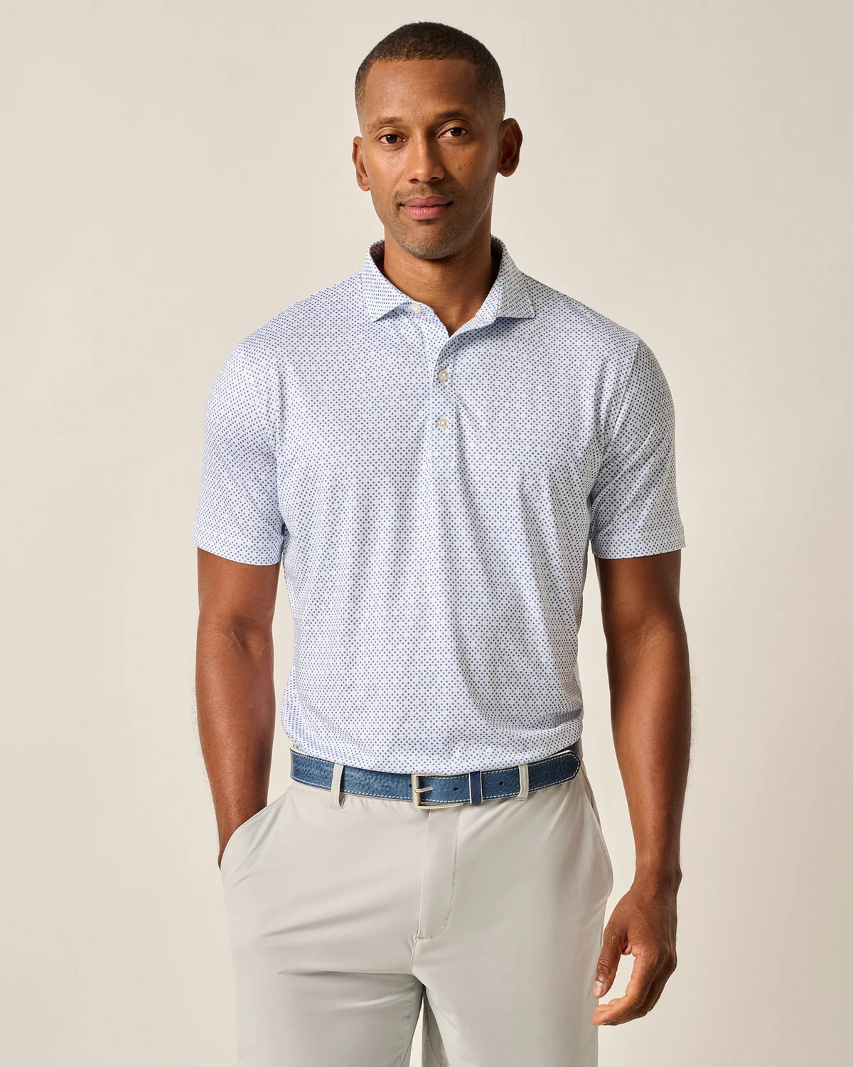 johnnie-O Maxim Performance Jersey Golf Shirts feature UV protection and a subtle print so you can look great while keeping yourself protected from the sun's harmful rays. These golf shirts are made with a lightweight, moisture-wicking fabric with a comfortable touch of stretch.