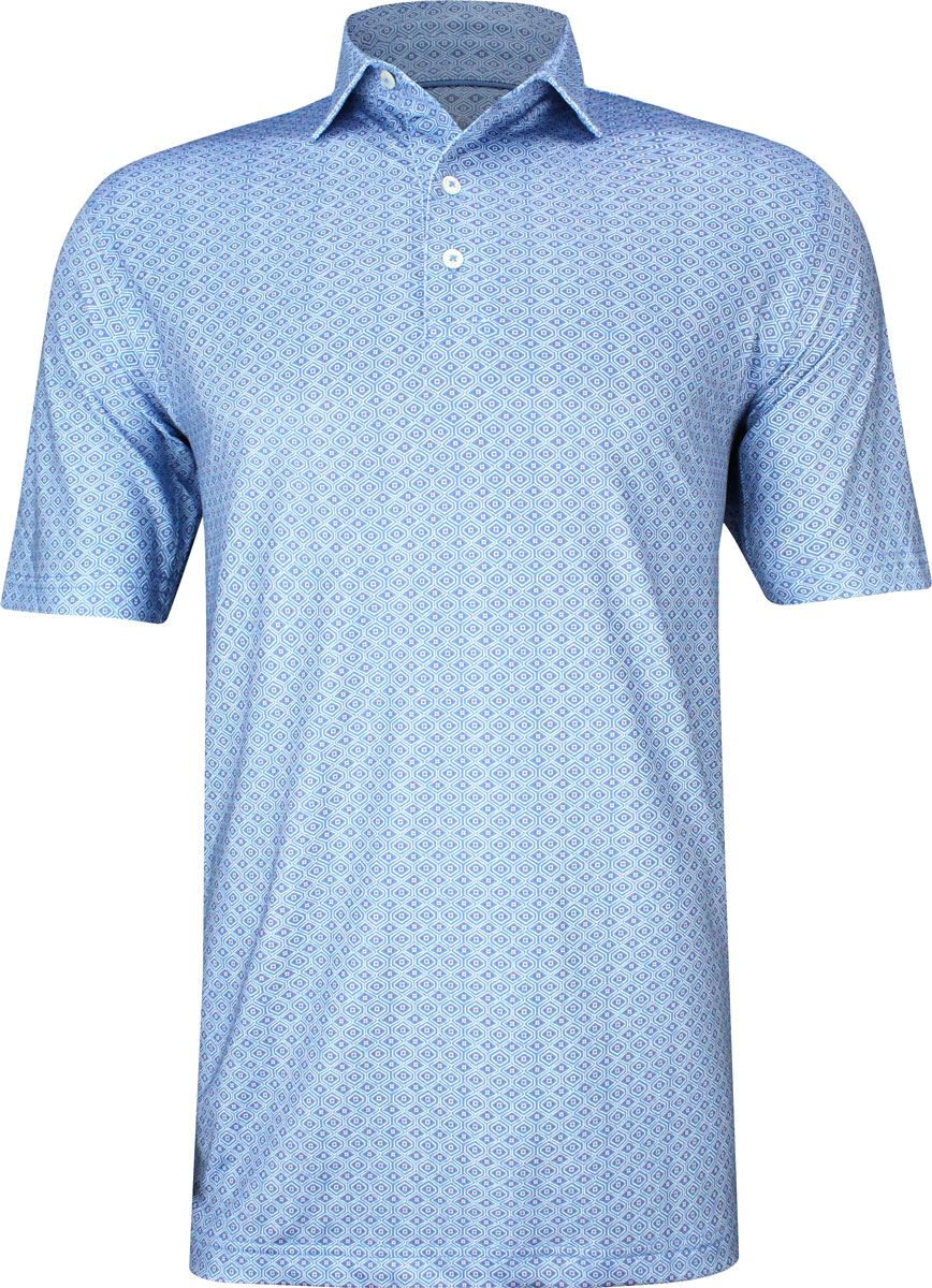 johnnie-O Prep-Formance Adler Golf Shirts are constructed with 93% Polyester, 7% Spandex, three-button placket, self collar, and subtle print.