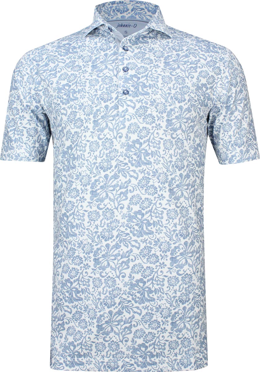 johnnie-O Prep-Formance Haas Golf Shirts - ON SALE - White with noreaster blue floral print