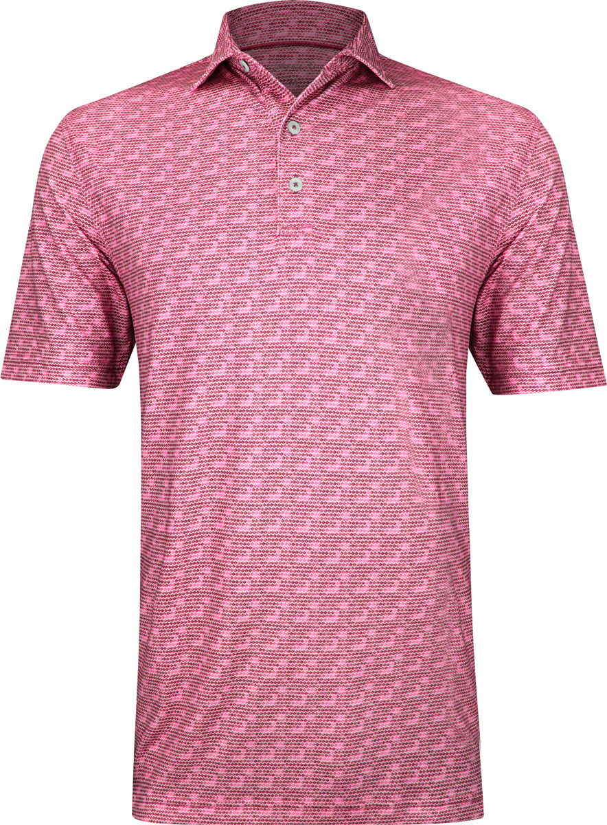 johnnie-O Prep-Formance Jarvis Golf Shirts are constructed with 93% Polyester, 7% Spandex, three-button placket, self collar, and subtle print.