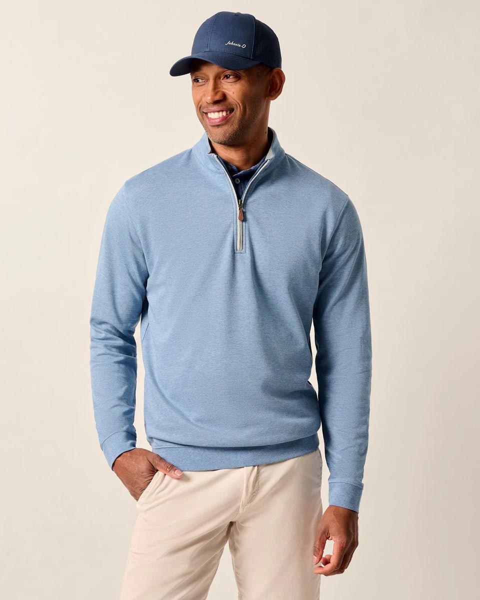johnnie-O Sully Quarter-Zip Golf Pullovers a heathered double-knit fabric to give you a carefree, casual look and feel.