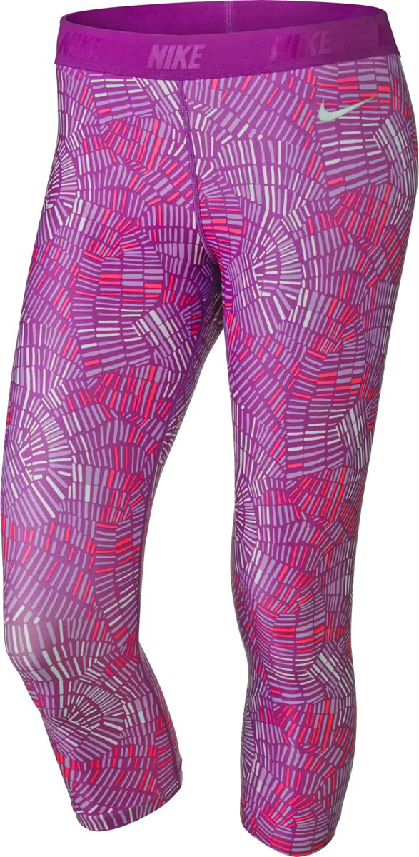 Nike Women's Dri-FIT Print Capri Golf Tights - ON SALE - Cosmic purple with pure platinum accents